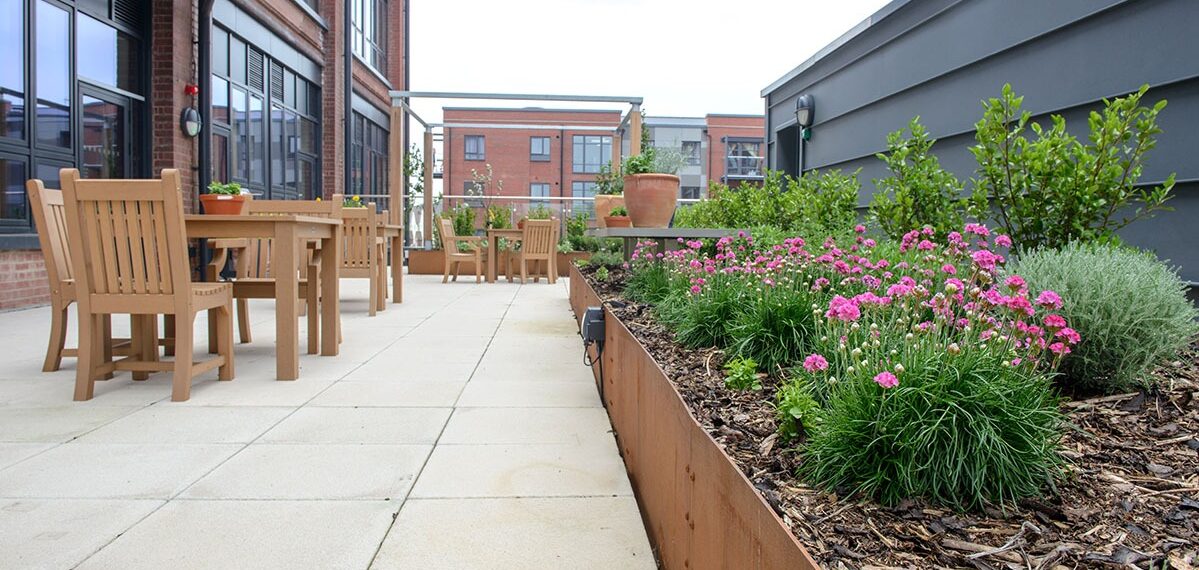As part of the transformation, the grand 1920s buildings in The Chocolate Quarter have been lovingly refurbished to maintain their landmark status. Part of this refurbishment included the construction of five new roof gardens at first and second floor level.
